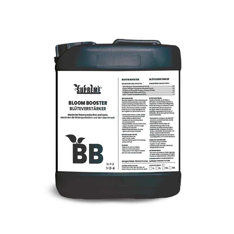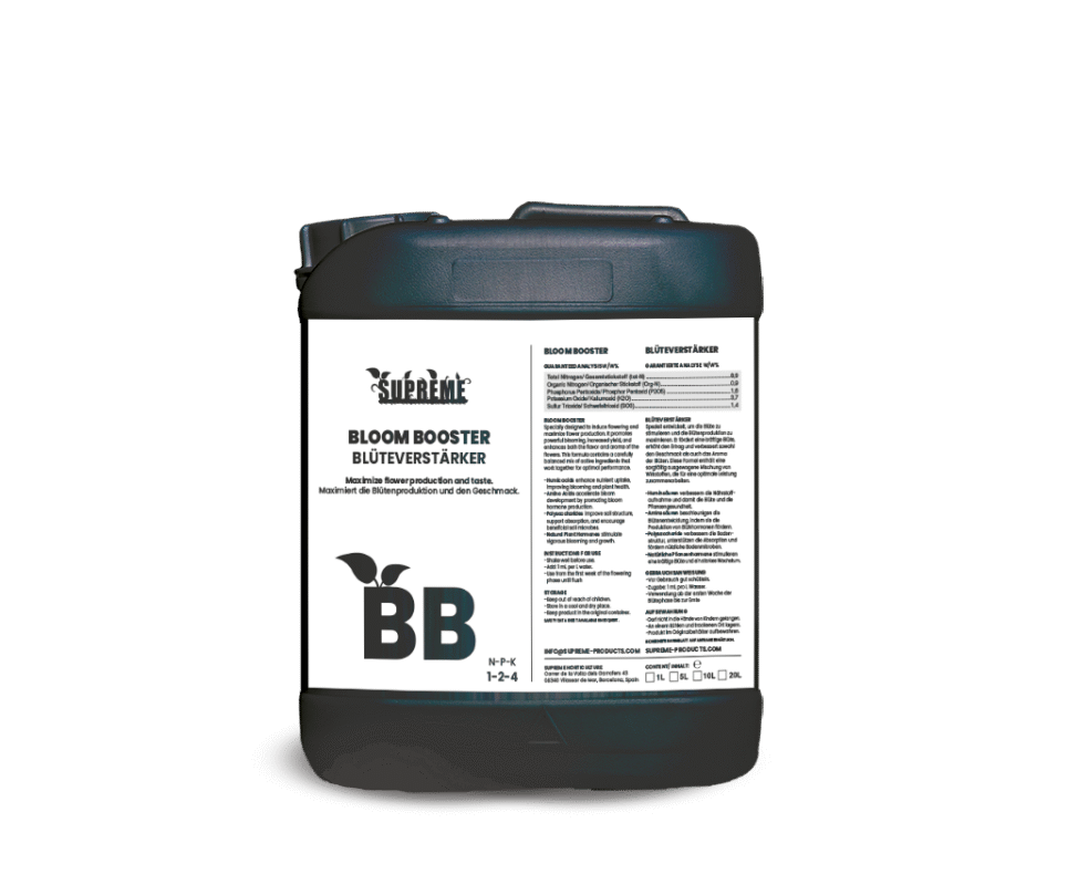 Maximize flowering potential with Supreme Terra Bloom, formulated to ensure prolific blooms and vigorous growth in soil substrates.