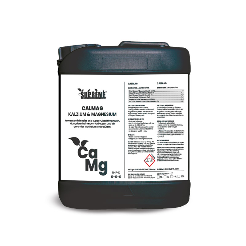 Fortify your plants with Supreme CalMag, providing essential calcium and magnesium to prevent deficiencies and support strong, healthy growth throughout all stages of development.