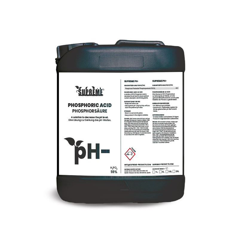 A solution of 59 % Phosphoric Acid to decrease the pH level to ensure optimal nutrient absorption and thriving plants.